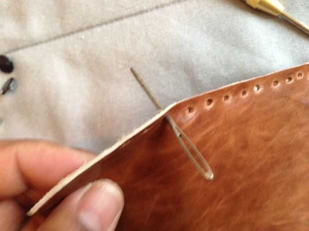 Con una aguja grande, meter la aguja a través de los wholes que acaba de crear para que sean más grandes. Creo que si tuvieras una herramienta adecuada para hacer los agujeros de cuero puede que no necesite hacerlo. No, lo hice esta fue mi solución.