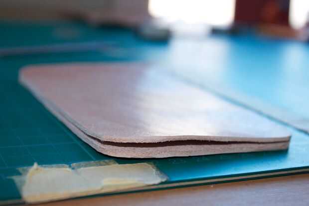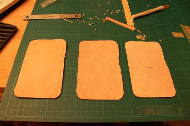 Entonces, utilicé el cuchillo de la manía para cortar las piezas de cuero: 3 total.