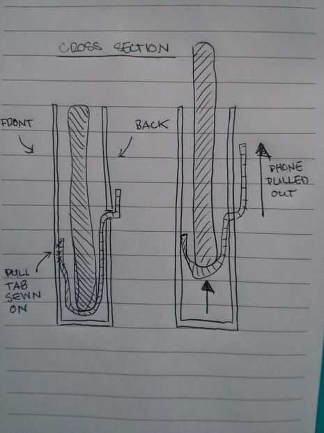 ** Originalmente, yo no cortó una pieza media, como pensó el margen en la parte delantera y detrás me daría suficiente profundidad - este no era el caso. Si le ha dado un margen mayor, puede que no necesite una pieza media. Te recomiendo lo primero corta las piezas delanteras y traseros y pellizcar tu smartphone entre ellos y juzga por ti mismo si usted necesita una capa suplementaria. Las desventajas para una tercera capa son que más capas son más difíciles de pegamento/coser correctamente y que es una costura que puede desarmarse.