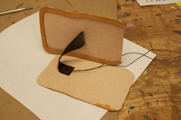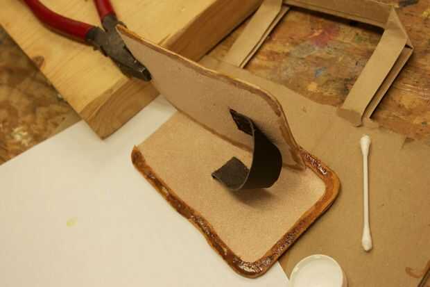 Esta siguiente parte es un poco difícil. Ahora debe preparar pegar la pieza central y la parte posterior de la tapa con cemento de contacto. Lo difícil es:
