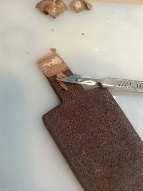 en primer lugar para la presilla raspado la parte superior para que sea más fácil coser una vez que el asa de metal en lugar...