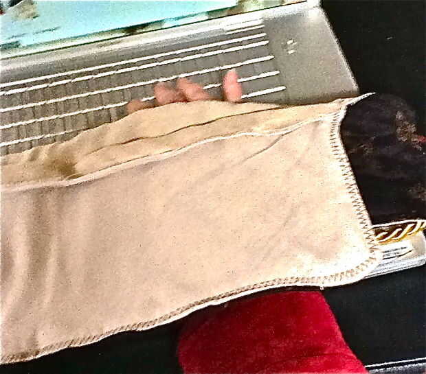 Aquí, el mantiene la capa superior mis manos calientes y la capa inferior mantiene el calor de ser atrapado demasiado cerca de la computadora - incluso si es uno de los que calor entre las teclas.