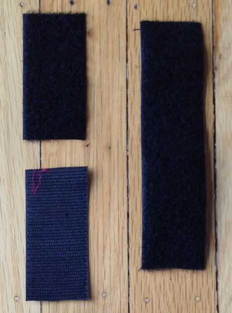 Para aquellos que no quieran coser, cortar una tira de material de gancho y lazo (otra vez dos piezas, uno tiene la