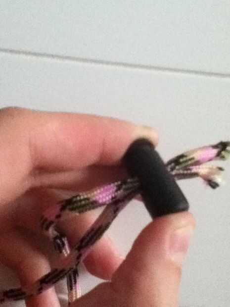 Ahora Deslice la cerradura de la cuerda en los dos cables del mediados. Y hoyo tu yoyo en - si no estás contento con el poco de 'tejido' puede hacerlo más largo o más corto.