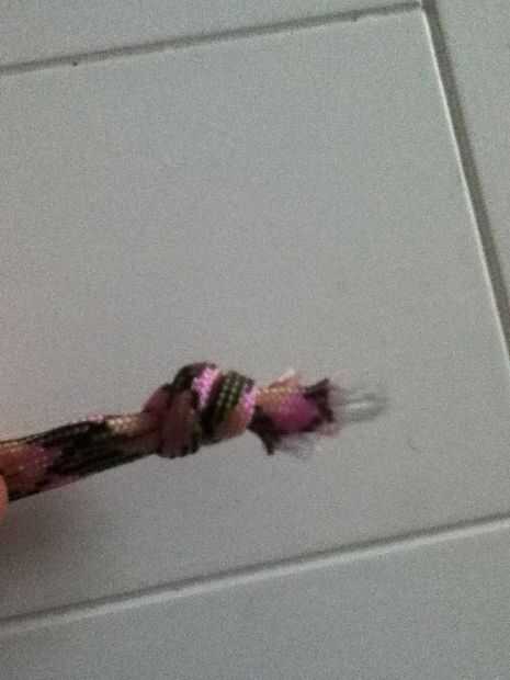 Deslice la cerradura de la cuerda hacia abajo. Corte los dos cables de 8-13cm de la cerradura de la cuerda y un nudo