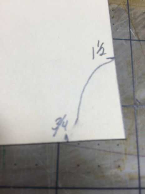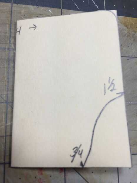 Doble la tarjeta de 1/2 y hacer una línea de radio pequeño entre esos 2 puntos