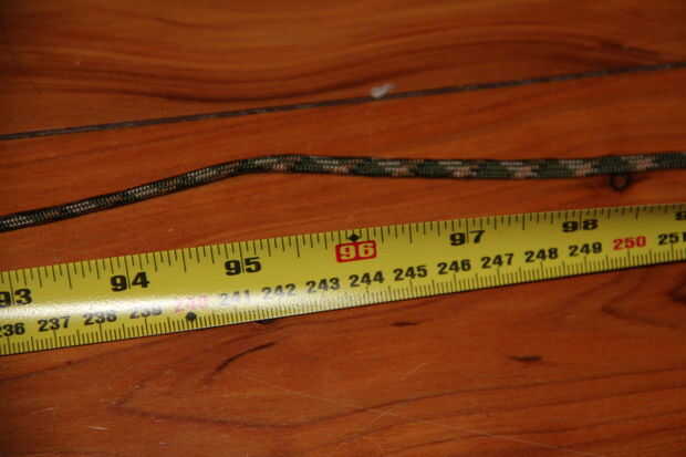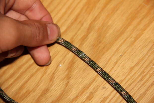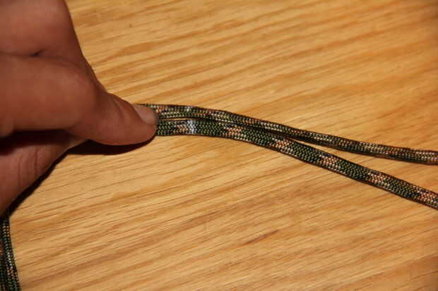 1. hacer un lazo en la izquierda longitud de paracord, justo por encima de la marca, primero pasar el sobrante en la longitud adecuada de cable.