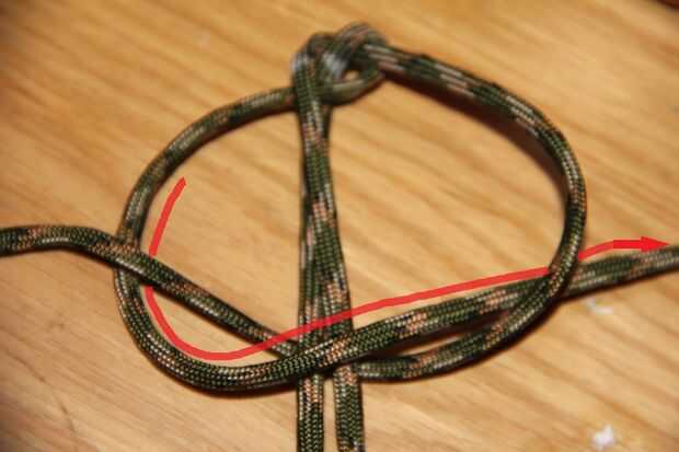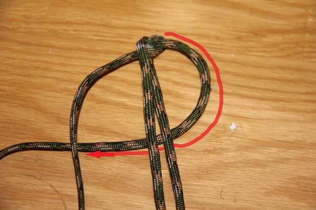 2. Pase el cordón izquierdo sobre las longitudes originales 2 de cuerda y debajo el de la derecha.