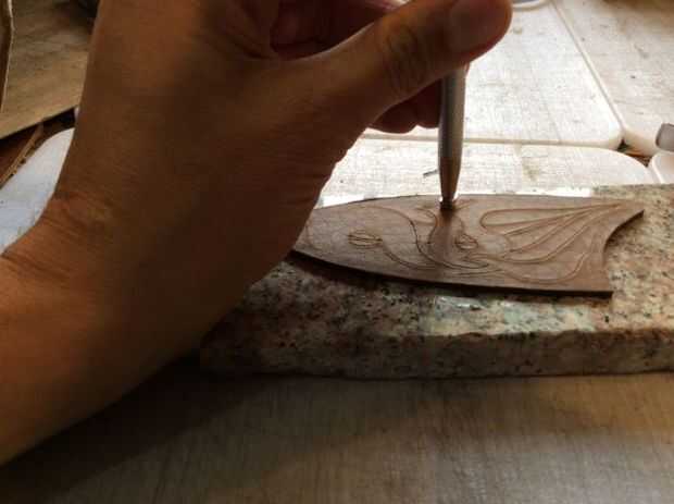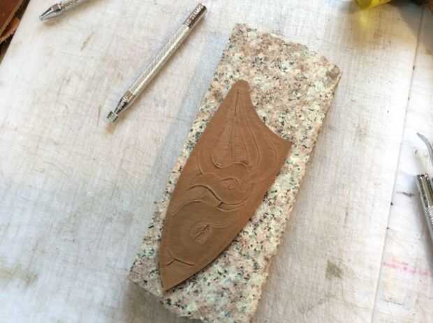 Luego utilizar las diferentes herramientas estampadas para realzar su imagen. Utilice al beveler para impresionar profundamente la imagen alrededor de las líneas de corte.