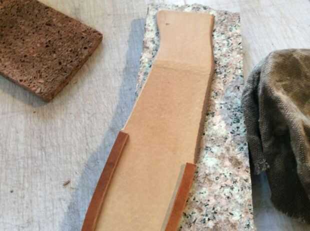Bisel con borde beveler o arena papel mojado entonces y frotar con un trozo de lienzo muy rápido. Esto las fibras se fusionan y dan un brillo. Teñir el borde y dejar secar. Repita el pulido pero esta vez lo frote con algunas abejas también. Esto sellará bien y dar un brillo más bonito.