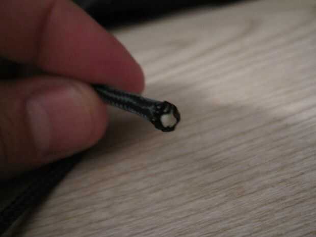 2) uso el encendedor para derretir los extremos de las cuerdas. Para ello en la pieza ahora libre y también en su paquete si se corta de una fuente más grande. Esto evita que las puntas deshilachadas y aparte.