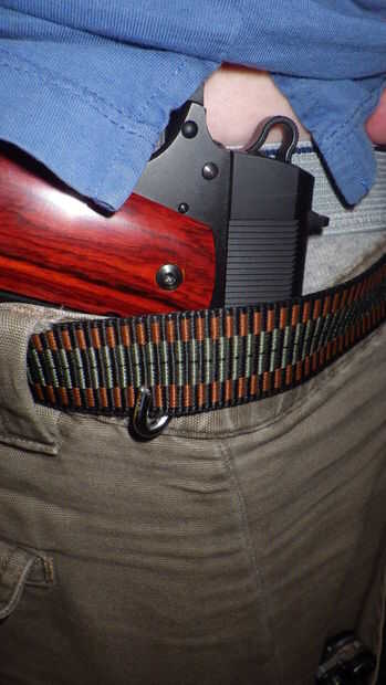 Descargo de responsabilidad: No haga esto si es ilegal donde estás. No hacer esto a menos que estés 100% seguro de su capacidad para prevenir una descarga accidental. Esta no es la funda más segura ahí. (No sé incluso si se trata realmente de una pistolera!) No hay nada aquí para bloquear un martillo o un disparador de la cubierta. No acepto ninguna responsabilidad por accidentes de su parte. Esto es aproximadamente tan minimalista como usted puede conseguir y no lo recomiendo para cualquier persona que no es completamente competente con el arma de elección. Los beneficios de este dispositivo son las siguientes: