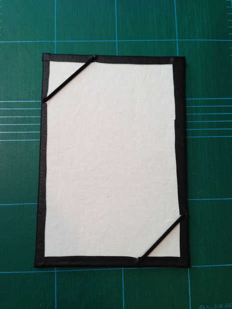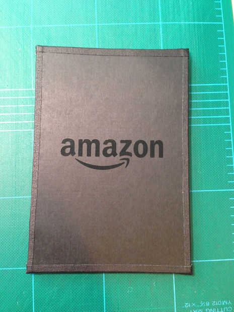 El último paso es envolver los bordes exteriores para limpiar cosas. Usé cinta de iluminadores, pega bien y paño. También se puede utilizar cinta adhesiva o cinta aislante incluso. Usted quiere asegurarse de que la cinta sólo se extiende en unos 0,375 (3/8") en el interior, para que cuando está en contra del Kindle no extenderse más allá de la luneta. (En otras palabras, cuando la cubierta está en su lugar solo desea paño potencialmente tocando la pantalla.) Esto puede requerir cuidadosamente corta la cinta a lo largo por lo mucho no cubre la parte delantera. Cortan la cinta justo lo suficiente cerca de las muescas en el interior de la cubierta para dejar las correas (lazos para el cabello) sentarse gratis.