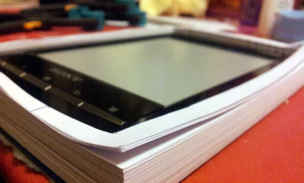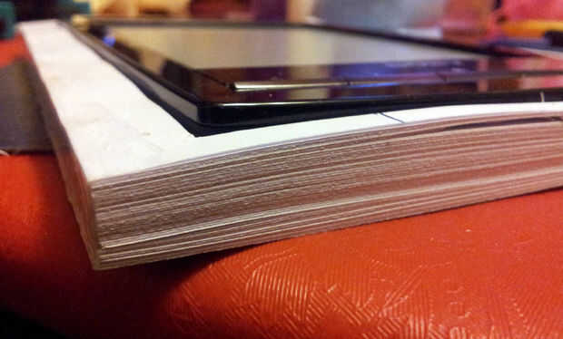 No intentéis abarcar mucho corte a la vez, puesto la cuchilla tiende a torcerse, y ademas, según vayáis avanzando, veréis las hojas ya cortadas se menean mucho, porque solo tienen un centímetro de material alrededor y solo están sujetas por el lomo encolado.