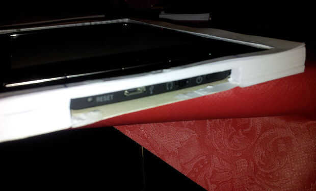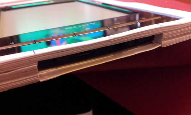 Un par de capas sobre la cola a través del agujero y ver como toma forma. Ahora es rígidos y las esquinas exteriores se comportan como un portátil normal.