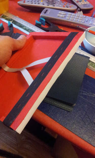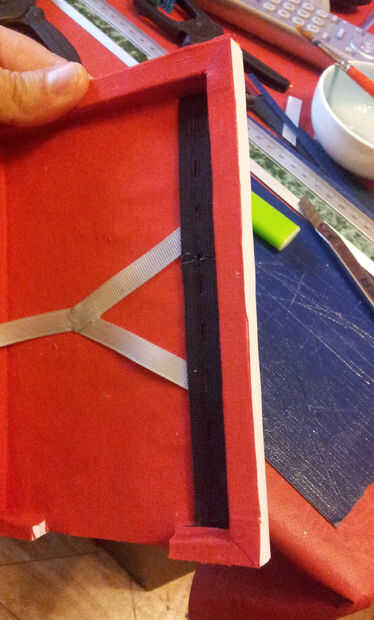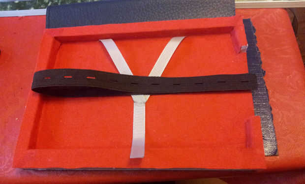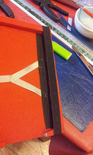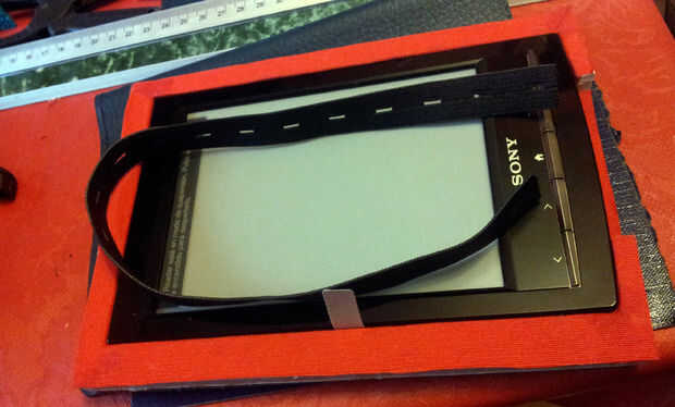 Hay cortar el pedazo de elástico, de forma tenga el doble de longitud la funda. Y la insertamos por los dos cortes también tenemos tener practicados en el fondo de la funda, y sujetamos el extremos, por la zona interior, no se verá cuando esté el lector puesto en su sitio. Yo lo sujetado con cola termofusible, reciben coserlo si queréis.