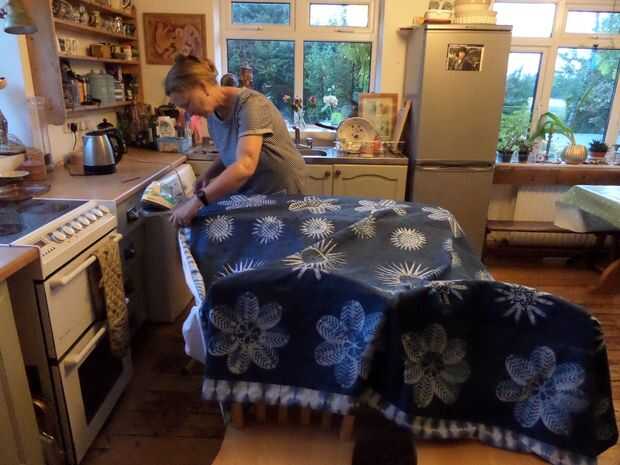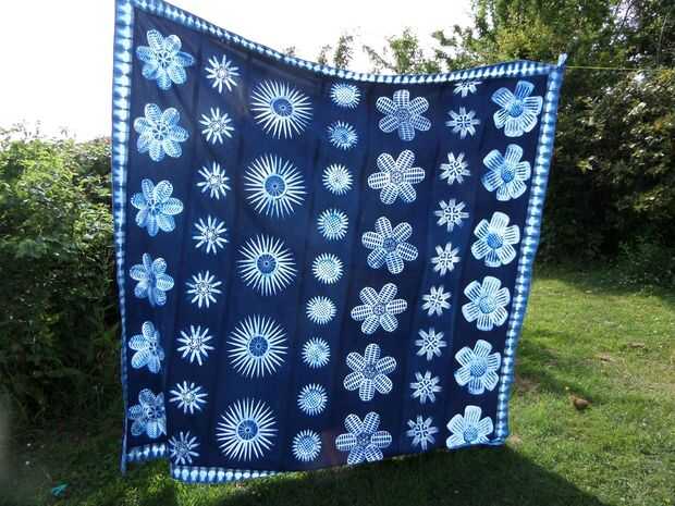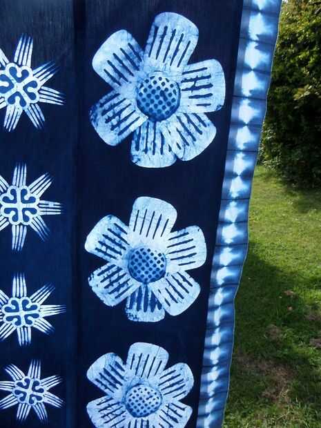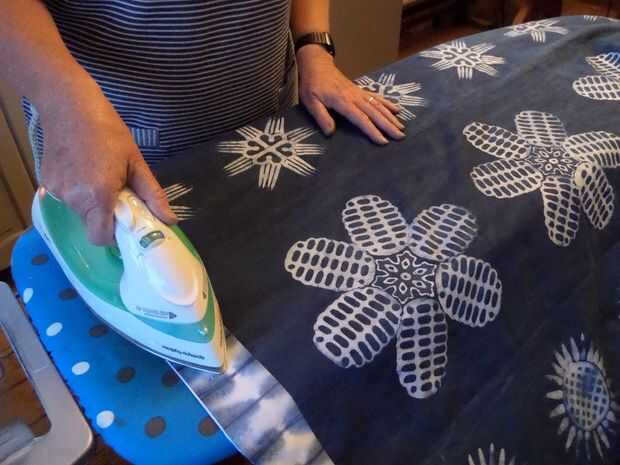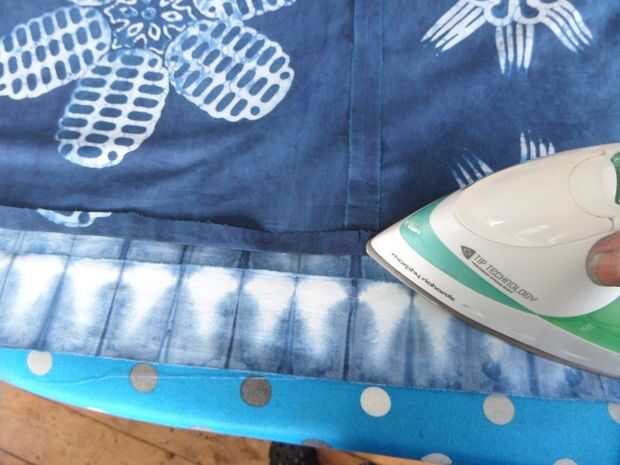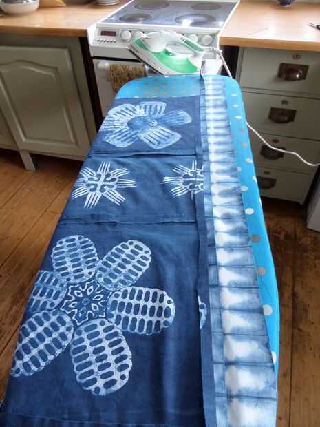 He pulsado cada costura con la plancha en los 4 lados, la foto final muestra el resultado final colgando en la línea que se lava antes de que el respaldo obtiene cosido en. Me encanta la forma que la luz hace la tela de batik cobran vida, siento que futuros proyectos probablemente tendrá que utilizar esta característica especial más.