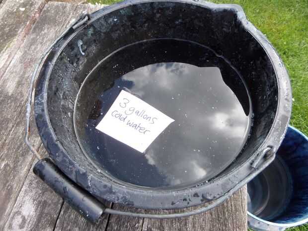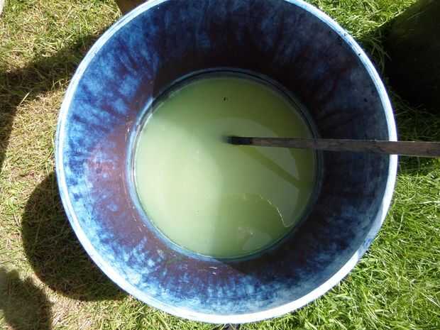 ¡ Echa un vistazo a "Batik Potato Masher ciega" instructable para la receta completa y el método de hacer un indigo IVA. Es un poco de medir, pero básicamente trata de no permitir el aire que en el IVA como revuelva como esta debilita el efecto de lo índigo. Llevará tiempo y revolver lentamente.