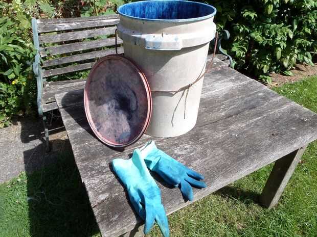 Usted necesitará encontrar un cubo con tapa, un par de guantes de goma.