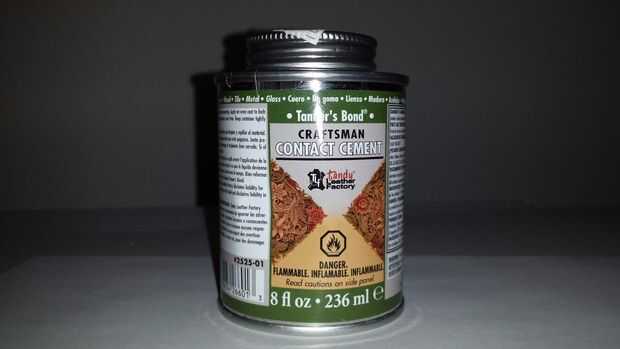 Usando cemento de contacto, unir las piezas de cuero a lo largo de los lados y el borde inferior, en las áreas de la ranura de correa y en el centro donde están las líneas de puntada.