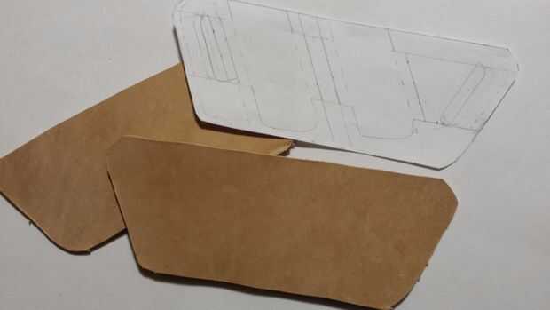 Corte el patrón que usted acaba de hacer y rastrear en la parte posterior de la piel. Dos, hacer frente y dorso, luego cortar las piezas de cuero.