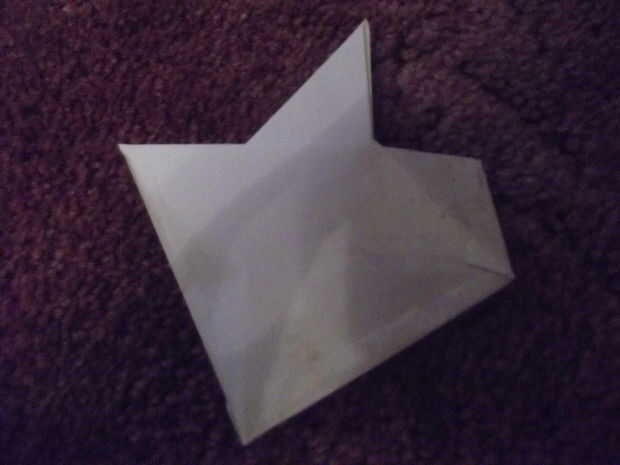 este shuriken de papel tarda más en hacer, requiere de más papel para hacer y no es tan robusto como el shuriken de papel estándar de 4 lados, pero parece mucho más impresionante. Lo malo de este shuriken es su dificultad para lanzar ya que se convie
