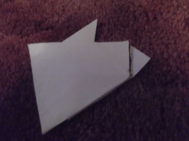 veces a lo largo de la línea (sea que se aburra de doblar a lo largo de líneas ahora?) en la imagen 1 y luego doblar sobre el pequeño reborde en la figura 2. cinta ambos abajo y voltear el modelo nuevo (sensación de mareo?)