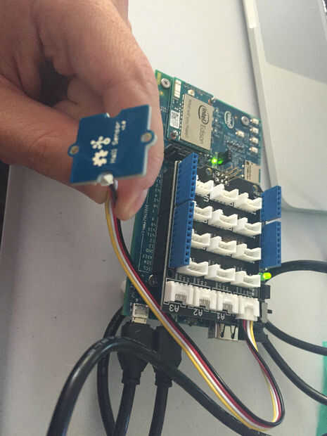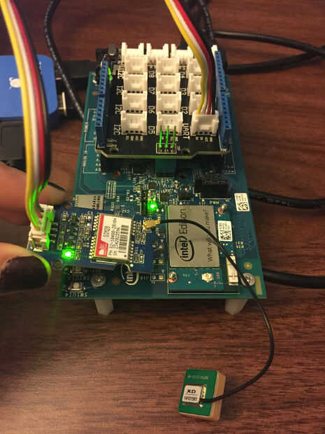 El sensor GPS está ligado a la entrada de la UART del escudo Base (incluido en el Grove Starter Kit Plus). Una vez conectado usted debe ver la luz verde en el sensor de encendido, esto indica su correctamente conectado y recibiendo energía.