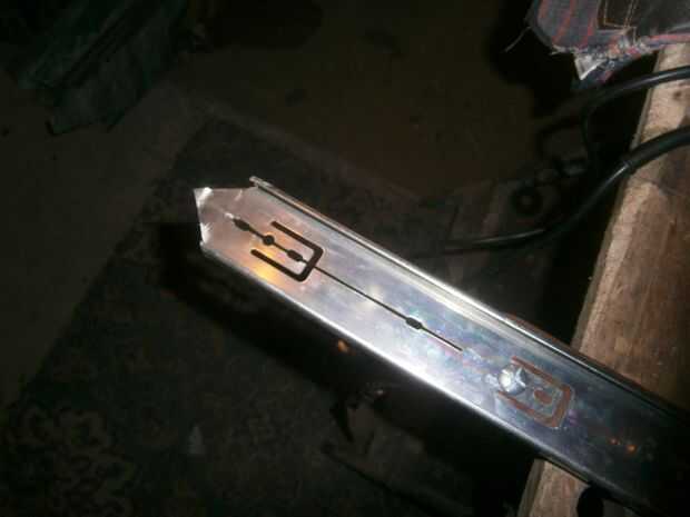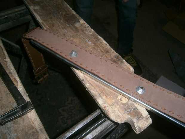 Fije las dos piezas junto con un remache o una tuerca y perno. Si utiliza una tuerca y perno (considere el uso de arandelas también) y luego cortar la parte sobrante del tornillo con una cortadora de disco y suavizar con un archivo.