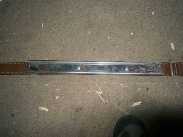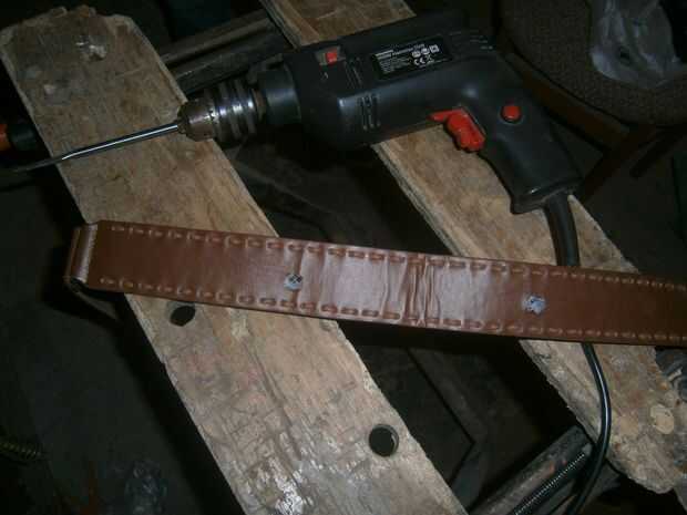 Para la parte de la vaina de este ' ible, usted tendrá que decidir primero donde irá el intermedio de la diapositiva. Usando los agujeros precortados, colocarlo donde quieras y hacer las marcas antes de cortar los agujeros en el cinturón. Mi cinturón se secciona con piezas de metal por lo que fue un primer trabajo de mirada para mí.
