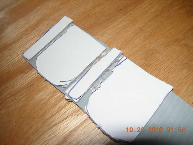 Poner las piezas de cartón en una tira de cinta adhesiva como se muestra en la imagen.