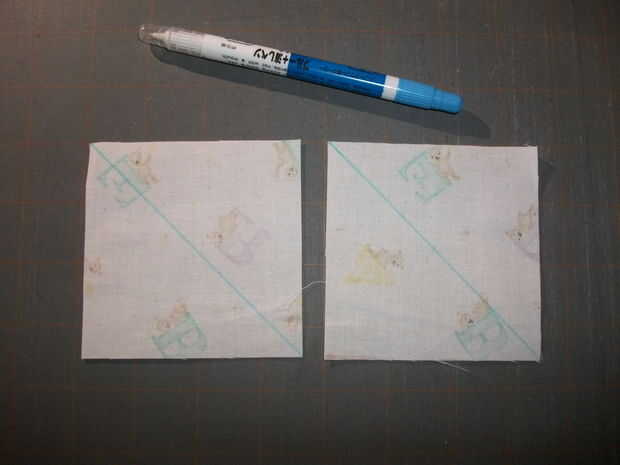 Luego coloque su segunda plaza del cielo tal como se muestra, una vez más que los bordes de corte, para que la línea dibujada sea perpendicular a la costura solo cosido y presiona. Coser otra vez a lo largo de la línea dibujada y luego presione, corte y abiertos como antes.