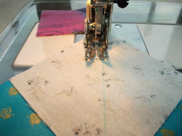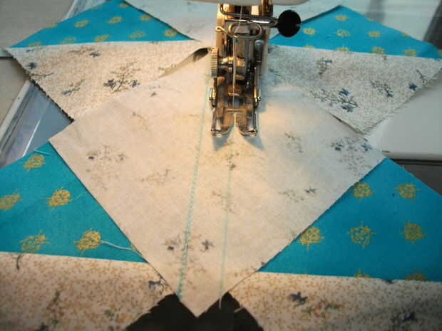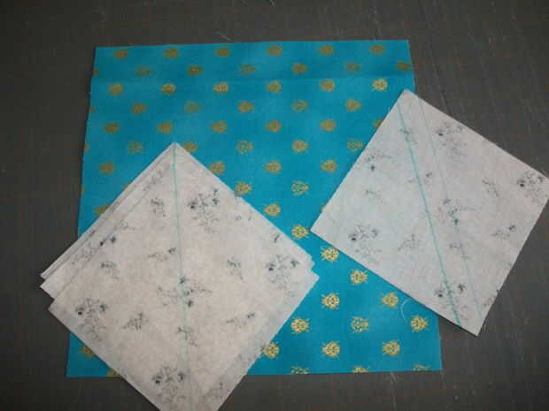 Si tienes 1/4 de pie para su máquina de coser marca central diagonal en la parte posterior de cada cuadrado de cielo. Si no tienes un 1/4" marca dos líneas cada uno un escaso 1/4" (a menudo me marca en 3/16" para permitir que el ancho de la punta de la pluma) de la diagonal central.