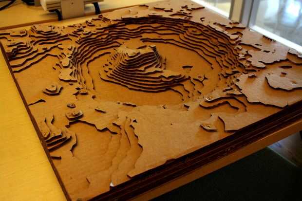 Aparte de unirse a láser cortar por sus bordes para crear formas 3D, también pueden apilar trozos uno encima del otro para crear esculturas de corte láser. Esto tiene un mapa de contorno como efecto de la forma 3D toda es definido por las diferencias en las líneas de corte entre cada capa. Autodesk 123D Make software le permite tomar un modelo 3D y corte que él para arriba en capas de láser corta las piezas que puedes recortar y luego montar en un modelo a escala. Si estás diseñando tus propias piezas para apilar, asegúrese de etiquetar cada pieza y crear a una especie de guía para facilitar el proceso de montaje y alineación.