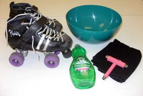 • Tus patines • Una herramienta de Skate (alrededor de $10 en una tienda de deportes. Cerrar vista en foto 2). • Un tazón de fuente o cubo • Dos toallas pequeñas • Jabón • Toallas de papel