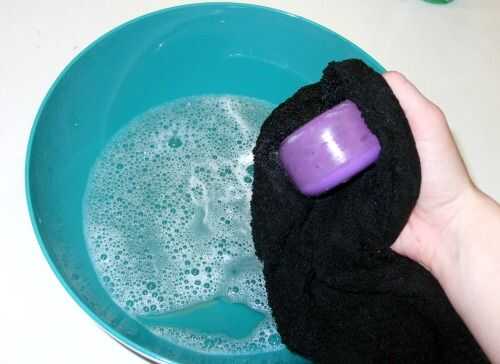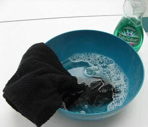 • Llenar el recipiente con agua tibia y añadir unas gotas de detergente. La mezcla debe ser con jabón pero no muy burbujeante, o se consigue en todas partes! Siempre puede añadir más jabón si se necesita, pero empezar pequeño. (Foto 1)