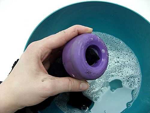 • Si usted quiere conseguir las ruedas super limpio, utilice la toalla para limpiar el orificio dentro de la rueda, dunk la rueda en el agua jabonosa y agítelo todo. (Foto 3)