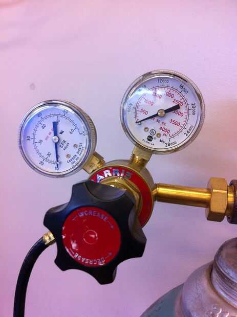 Al abrir completamente la rueda de cilindro que te darás cuenta que el medidor de presión de cilindro cambia de 0 a un valor, la máxima de que es de 2500 PSI. En este caso la presión es un poco más 1000 PSI, suficiente para soldar.