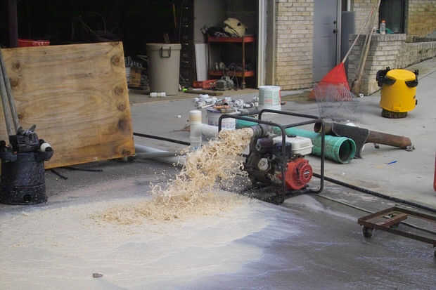 Tuve que llenarlo con una manguera básicamente que tuvo tal vez una hora puesto que por ahora era un hoyo bastante grande y luego tuve que levantar la línea flexible de 50 pies hasta la cubierta posterior y cebar hacia atrás con una manguera, pero podía desplazarse una yarda de arena hacia fuera en un tiempo de cinco minutos antes de se quedó sin agua.