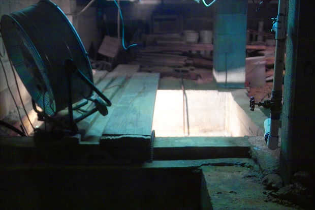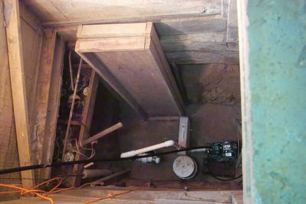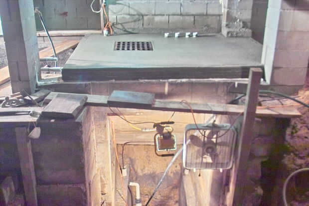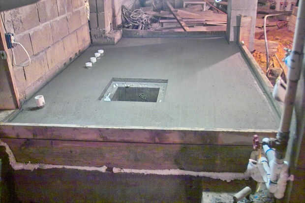 Decidí echar un piso sólido en la parte inferior del eje de la cerradura en todas las paredes y actuar como un encabezado a pesar de fue allí donde un pie de página sería normalmente pero desde que quería un dren y tenía un tubo de diez pulgadas cavó abajo otro 5 pies y finalmente agua, entonces sólo porque como dije me deseó un buen drenaje natural y el tubo me las arreglé para tirar abajo sobre 10 pies de la tubería grande y la izquierda cerca de cuatro pies que se pega sobre el suelo, luego vierte el piso y básicamente tenía una caja de concreto en forma de cuña que era 7 pies cuadrados en la parte superior en el interior y alrededor de 10 pies de ancho en el exterior y rebajado hasta cerca de 6 pies de ancho en el exterior 4 pies en el interior por lo que se vería como un cabeza flecha apuntando hacia abajo.