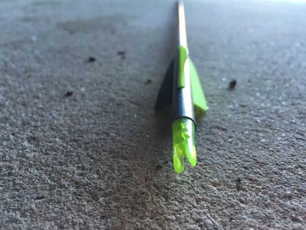 Ahora usted necesita montar una flecha. OK, así que mira la flecha. El extremo que no tiene un punto se llama el nock. Es necesario insertar cerca de la mitad de la cuerda. Hay generalmente un pequeño pedazo de metal en la cuerda, para ayudar a apuntar. El extremo con la punta va en la empuñadura del arco. No apoyar la flecha en la mano. Duele cuando lo suelte. Dibujar la cadena de nuevo, tu mano debe descansar sobre su cara. Mire en el eje (largo, sólamente la parte) de la flecha. Debe estar apuntando a su objetivo.