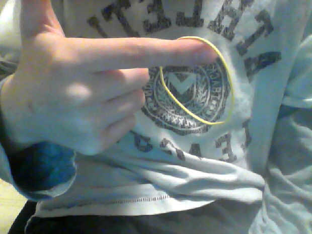 3: estirar la banda elástica para el pulgar como imagen 2.