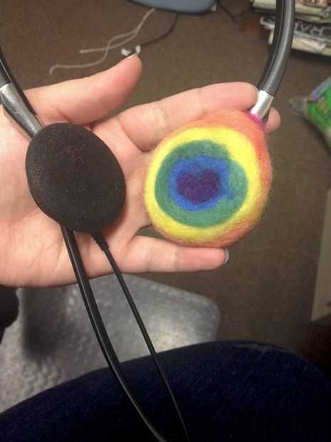 Probar su nueva cubierta en auriculares (s) para la comodidad y ajuste según sea necesario. Roca hacia fuera con los arco iris!
