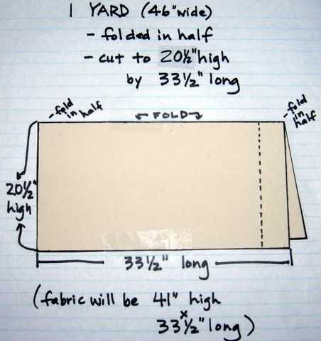 La tela debe cortarse a 41" de alto x 33 1/2" de largo.