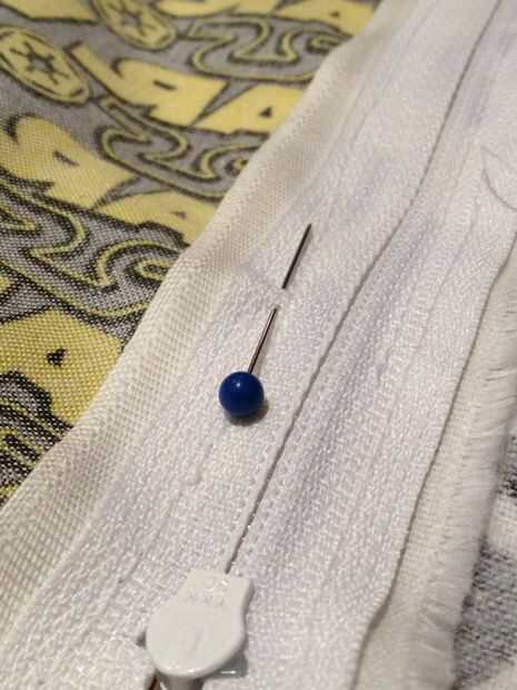 I doblado a un lado de la tela encima y puestas en la cremallera en la parte inferior de uno de los cuadrados de tela. Yo entonces funcionó a través de la máquina de coser, teniendo cuidado de retirar las clavijas cuando fui a lo largo para asegurarse de que no rompo la máquina. Una vez que ha terminado un lado hacer lo mismo a otro cuadrado de tela para el otro lado de su cojín.