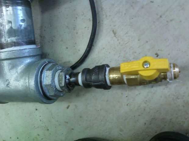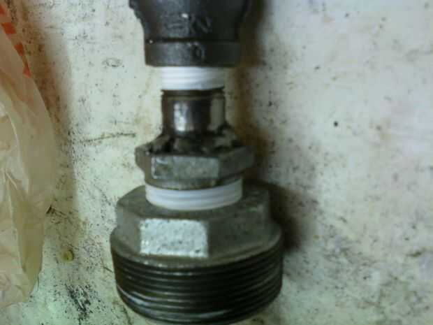 Use cinta de plomería o droga en el otro extremo de la tubería de 1/2" y enrosque en el reductor, o válvula de bola de 1/2".