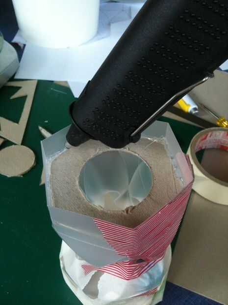 Comience con la parte posterior. Únalos con cinta adhesiva las dos partes.