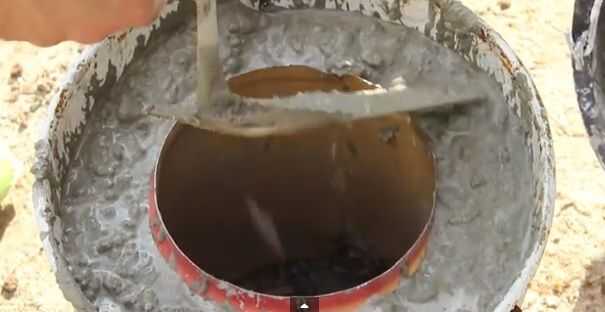 Un cubo tiene que rellenarse con hormigón refractario. Después de puede reservado un hueco para poner el aire.