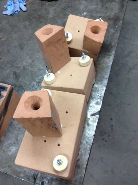 el molde con las varillas roscadas y está listo para un vaciado de metal.