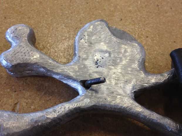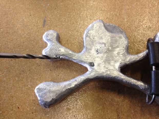 dos agujeros en la bandera pirata. Y había un pequeño gancho en la parte posterior